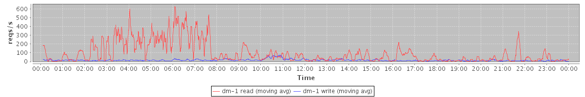 avg(dm-1 read) = 1531.98 avg(dm-1 write) = 166.54