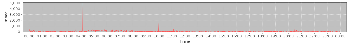 avg(SendMsgRequest) = 748.12 avg(DeleteAccountRequest) = 5499.25 avg(BackupQueryRequest) = 589.20 avg(GetAggregateQuotaUsageOnServerRequest) = 5431.00 avg(SaveDraftRequest) = 1402.92 avg(SearchConvRequest) = 610.63 avg(RemoveAttachmentsRequest) = 4057.00 avg(FolderActionRequest.empty) = 621.40 avg(BackupRequest) = 1236.00 avg(GetQuotaUsageRequest) = 9083.00