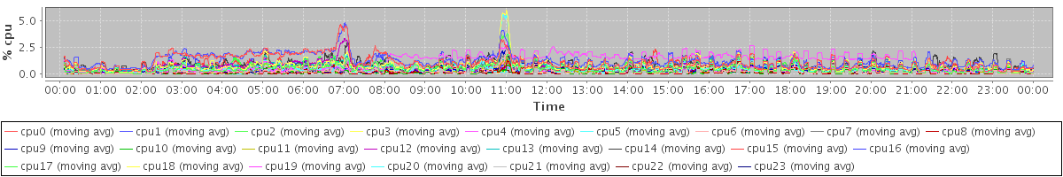 avg(cpu0) = 0.15 avg(cpu1) = 0.25 avg(cpu2) = 0.04 avg(cpu3) = 0.10 avg(cpu4) = 0.16 avg(cpu5) = 0.05 avg(cpu6) = 0.01 avg(cpu7) = 0.06 avg(cpu8) = 0.01 avg(cpu9) = 0.02 avg(cpu10) = 0.00 avg(cpu11) = 0.01 avg(cpu12) = 0.04 avg(cpu13) = 0.03 avg(cpu14) = 0.00 avg(cpu15) = 0.01 avg(cpu16) = 0.00 avg(cpu17) = 0.03 avg(cpu18) = 0.00 avg(cpu19) = 0.00 avg(cpu20) = 0.00 avg(cpu21) = 0.02 avg(cpu22) = 0.00 avg(cpu23) = 0.02