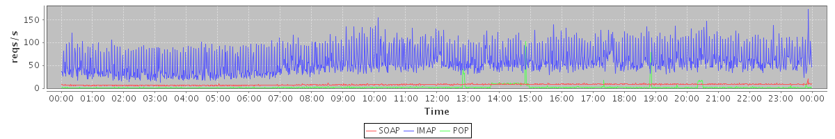 Host zm09.stanford.edu: Mailboxd: Request Rate by Client Protocol