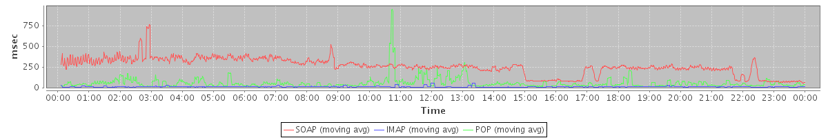 avg(IMAP) = 167.20 avg(IMAP SSL) = 625.42 avg(POP) = 0.10 avg(POP SSL) = 0.99