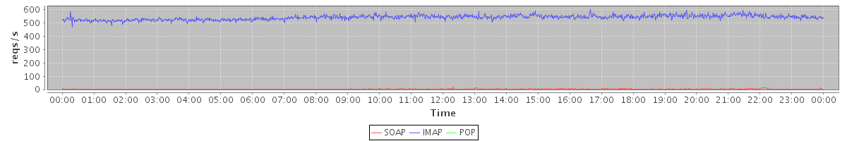 Host zm07.stanford.edu: Mailboxd: Request Rate by Client Protocol