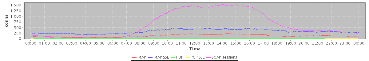avg(IMAP) = 126.82 avg(IMAP SSL) = 325.72 avg(POP) = 0.02 avg(POP SSL) = 0.14 avg(SOAP sessions) = 637.68