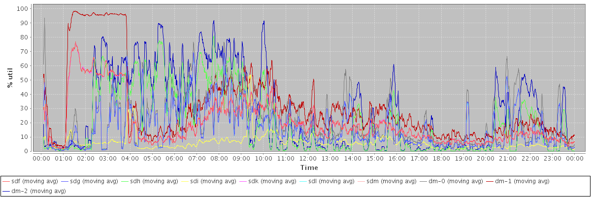 avg(sdf) = 19.74 avg(sdg) = 16.42 avg(sdh) = 20.10 avg(sdi) = 6.00 avg(sdk) = 19.65 avg(sdl) = 16.39 avg(sdm) = 20.03 avg(dm-0) = 20.81 avg(dm-1) = 31.43 avg(dm-2) = 26.67