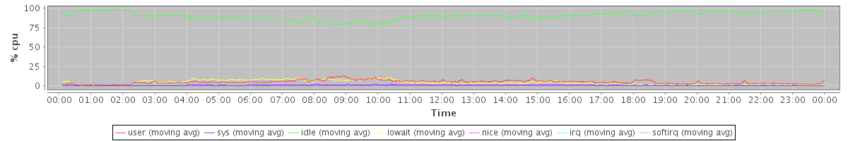 avg(user) = 4.80 avg(sys) = 0.61 avg(idle) = 90.43 avg(iowait) = 4.07 avg(nice) = 0.00 avg(irq) = 0.00 avg(softirq) = 0.08