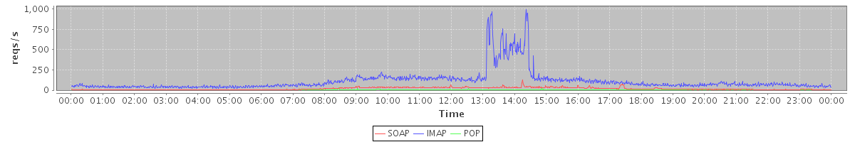 Host zm07.stanford.edu: Mailboxd: Request Rate by Client Protocol