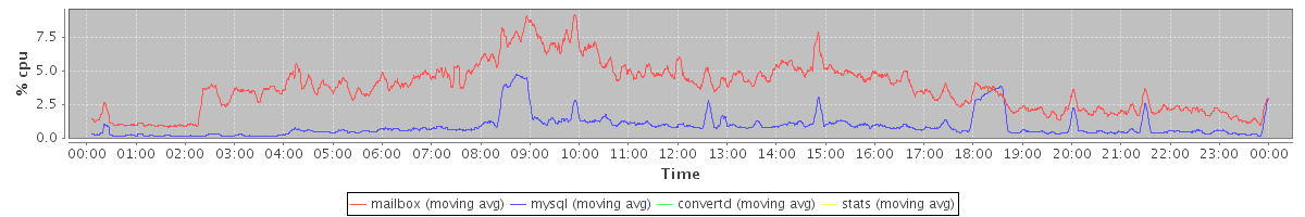avg(mailbox) = 3.73 avg(mysql) = 0.85 avg(convertd) = 0.00 avg(stats) = 0.00