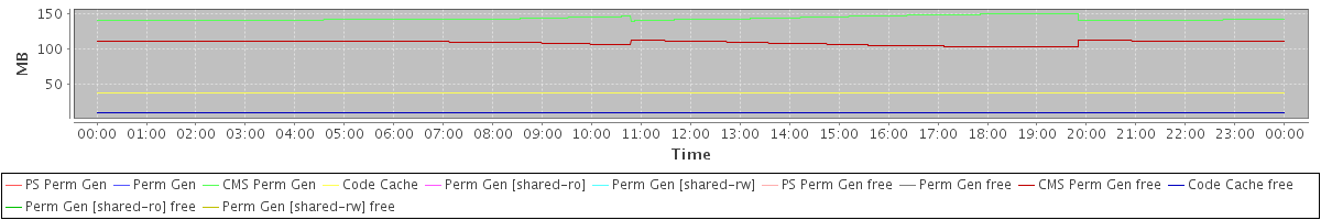 avg(PS Perm Gen) = 0.00 avg(Perm Gen) = 0.00 avg(CMS Perm Gen) = 143.38 avg(Code Cache) = 37.35 avg(Perm Gen [shared-ro]) = 0.00 avg(Perm Gen [shared-rw]) = 0.00 avg(PS Perm Gen free) = 0.00 avg(Perm Gen free) = 0.00 avg(CMS Perm Gen free) = 108.95 avg(Code Cache free) = 9.21 avg(Perm Gen [shared-ro] free) = 0.00 avg(Perm Gen [shared-rw] free) = 0.00