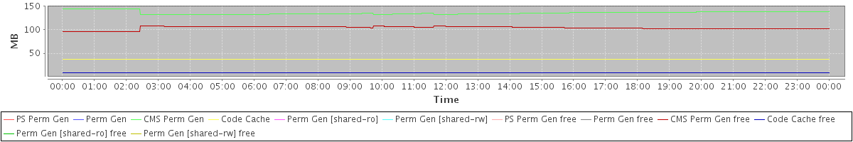 avg(PS Perm Gen) = 0.00 avg(Perm Gen) = 0.00 avg(CMS Perm Gen) = 135.34 avg(Code Cache) = 37.66 avg(Perm Gen [shared-ro]) = 0.00 avg(Perm Gen [shared-rw]) = 0.00 avg(PS Perm Gen free) = 0.00 avg(Perm Gen free) = 0.00 avg(CMS Perm Gen free) = 103.70 avg(Code Cache free) = 8.96 avg(Perm Gen [shared-ro] free) = 0.00 avg(Perm Gen [shared-rw] free) = 0.00