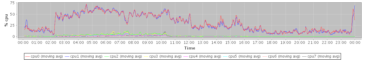 avg(cpu0) = 1.43 avg(cpu1) = 1.40 avg(cpu2) = 0.84 avg(cpu3) = 0.82 avg(cpu4) = 0.57 avg(cpu5) = 0.59 avg(cpu6) = 0.54 avg(cpu7) = 0.37