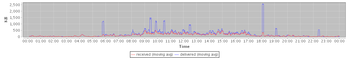 avg(received msgs) = 1.05 avg(delivered msgs) = 1.30 avg(received x rcpts) = 1.30