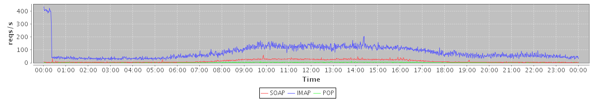 Host zm07.stanford.edu: Mailboxd: Request Rate by Client Protocol