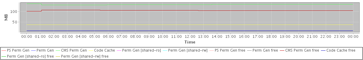 avg(PS Perm Gen) = 0.00 avg(Perm Gen) = 0.00 avg(CMS Perm Gen) = 133.75 avg(Code Cache) = 37.44 avg(Perm Gen [shared-ro]) = 0.00 avg(Perm Gen [shared-rw]) = 0.00 avg(PS Perm Gen free) = 0.00 avg(Perm Gen free) = 0.00 avg(CMS Perm Gen free) = 105.29 avg(Code Cache free) = 9.18 avg(Perm Gen [shared-ro] free) = 0.00 avg(Perm Gen [shared-rw] free) = 0.00