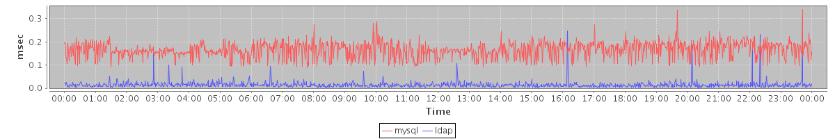 avg(mysql) = 0.17 avg(ldap) = 0.01