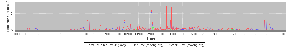 avg(total cputime) = 0.12 avg(user time) = 0.11 avg(system time) = 0.01