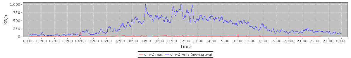 avg(dm-1 read) = 2898.74 avg(dm-1 write) = 729.66
