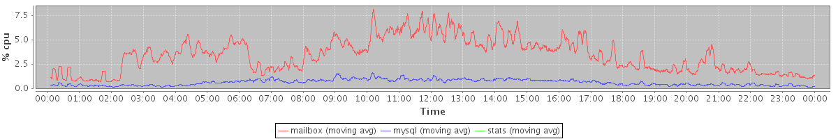 avg(mailbox) = 3.39 avg(mysql) = 0.60 avg(stats) = 0.00