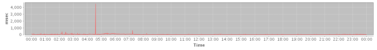 max(MsgActionRequest.move) = 310.00 max(GetItemRequest) = 285.00 max(GetContactsRequest) = 323.00 max(MsgActionRequest.delete) = 492.00 max(NoOpRequest) = 373.00 max(GetInfoRequest) = 336.00 max(GetFolderRequest) = 442.00 max(SyncRequest) = 486.00 max(AuthRequest) = 335.00 max(GetAppointmentRequest) = 3323.00