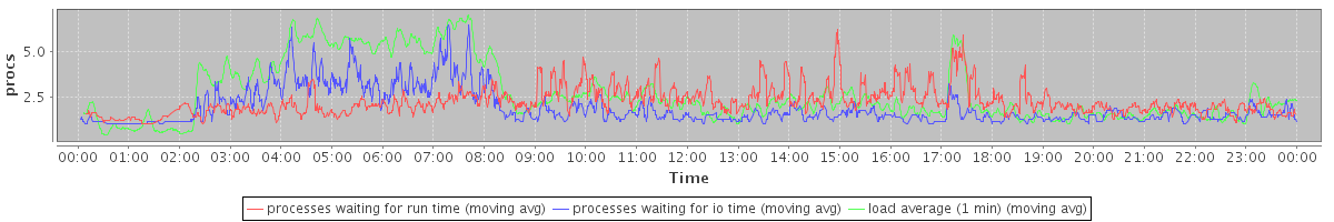 avg(processes waiting for run time) = 1.79 avg(processes waiting for io time) = 1.33 avg(load average (1 min)) = 2.68