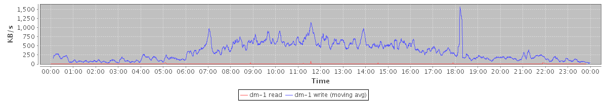 avg(dm-1 read) = 0.03 avg(dm-1 write) = 1.56