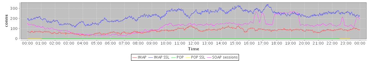 avg(IMAP) = 77.95 avg(IMAP SSL) = 228.57 avg(POP) = 0.01 avg(POP SSL) = 0.04 avg(SOAP sessions) = 124.33