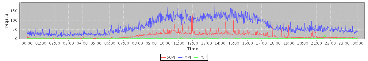 Host zm03.stanford.edu: Mailboxd: Request Rate by Client Protocol