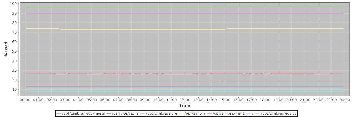 avg(updatedb) = 31.74 avg(java) = 1974.15 avg(gzip) = 2728.58 avg(mysqld) = 504.96 avg(perl) = 46.35 avg(httpd) = 48.83 avg(mysqldump) = 152.62 avg(zmmailboxd) = 2527.44 avg(horsewatcher-fe) = 49.62 avg(zmcompresslogs) = 1167.00
