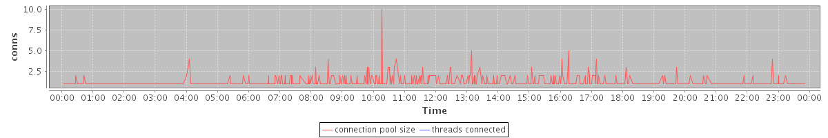 avg(connection pool size) = 0.51 avg(threads connected) = 0.00