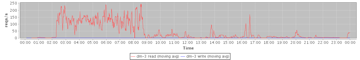 avg(dm-3 read) = 35.85 avg(dm-3 write) = 1.00