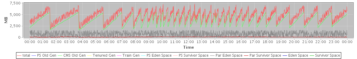 avg(total free) = 3127.20 avg(PS Old Gen free) = 0.00 avg(CMS Old Gen free) = 2245.81 avg(Tenured Gen free) = 0.00 avg(Train Gen free) = 0.00 avg(PS Eden Space free) = 0.00 avg(PS Survivor Space free) = 0.00 avg(Par Eden Space free) = 794.27 avg(Par Survivor Space free) = 87.12 avg(Eden Space free) = 0.00 avg(Survivor Space free) = 0.00