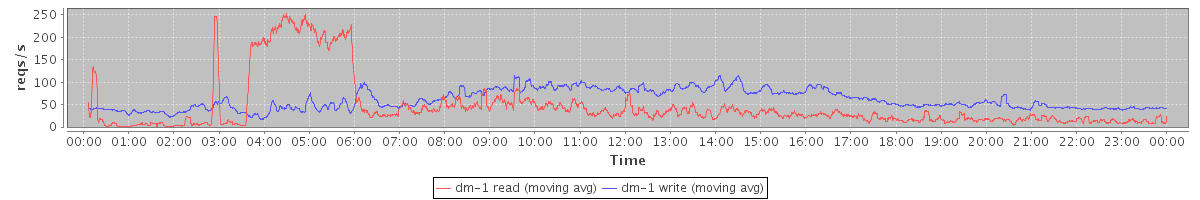 avg(dm-1 read) = 707.60 avg(dm-1 write) = 1407.58
