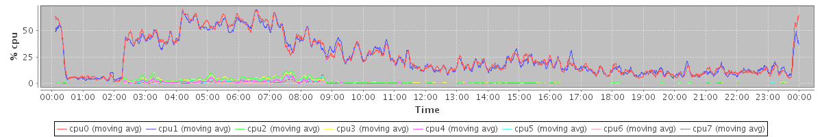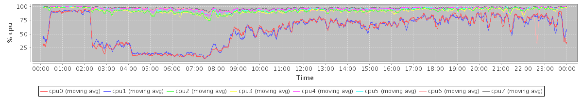 avg(cpu0) = 1.35 avg(cpu1) = 1.36 avg(cpu2) = 0.74 avg(cpu3) = 0.79 avg(cpu4) = 0.50 avg(cpu5) = 0.52 avg(cpu6) = 0.48 avg(cpu7) = 0.34