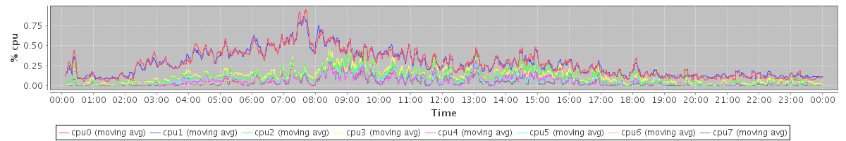 avg(cpu0) = 0.28 avg(cpu1) = 0.28 avg(cpu2) = 0.11 avg(cpu3) = 0.12 avg(cpu4) = 0.06 avg(cpu5) = 0.07 avg(cpu6) = 0.08 avg(cpu7) = 0.04