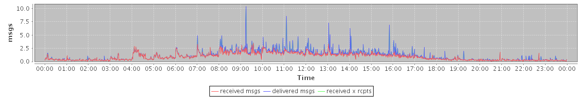 avg(received msgs) = 0.91 avg(delivered msgs) = 1.09 avg(received x rcpts) = 1.09