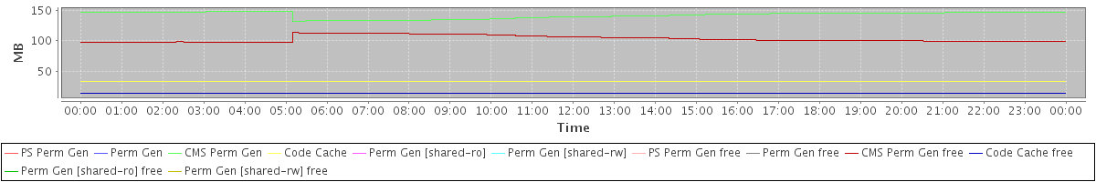 avg(PS Perm Gen) = 0.00 avg(Perm Gen) = 0.00 avg(CMS Perm Gen) = 142.53 avg(Code Cache) = 33.01 avg(Perm Gen [shared-ro]) = 0.00 avg(Perm Gen [shared-rw]) = 0.00 avg(PS Perm Gen free) = 0.00 avg(Perm Gen free) = 0.00 avg(CMS Perm Gen free) = 103.30 avg(Code Cache free) = 13.55 avg(Perm Gen [shared-ro] free) = 0.00 avg(Perm Gen [shared-rw] free) = 0.00