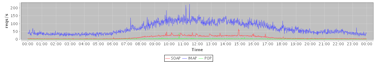 Host zm07.stanford.edu: Mailboxd: Request Rate by Client Protocol