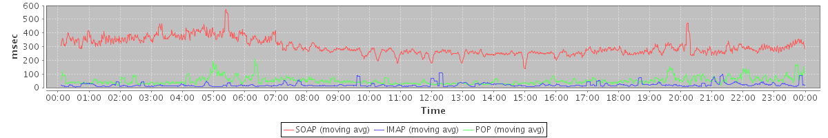 Host zm07.stanford.edu: Mailboxd: Response Time by Client Protocol