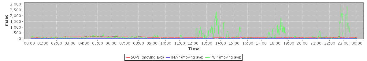 avg(SOAP) = 134.69 avg(IMAP) = 14.55 avg(POP) = 228.88