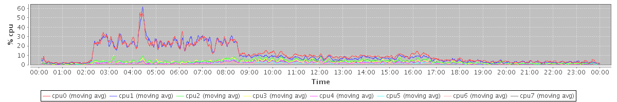 avg(cpu0) = 1.06 avg(cpu1) = 1.03 avg(cpu2) = 0.54 avg(cpu3) = 0.53 avg(cpu4) = 0.33 avg(cpu5) = 0.36 avg(cpu6) = 0.23 avg(cpu7) = 0.40