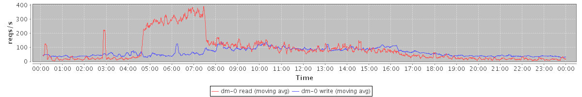avg(dm-3 read) = 1916.78 avg(dm-3 write) = 401.45