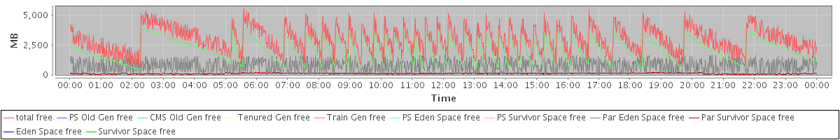 avg(total free) = 2967.27 avg(PS Old Gen free) = 0.00 avg(CMS Old Gen free) = 2069.83 avg(Tenured Gen free) = 0.00 avg(Train Gen free) = 0.00 avg(PS Eden Space free) = 0.00 avg(PS Survivor Space free) = 0.00 avg(Par Eden Space free) = 781.83 avg(Par Survivor Space free) = 115.61 avg(Eden Space free) = 0.00 avg(Survivor Space free) = 0.00