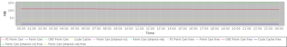 avg(PS Perm Gen) = 0.00 avg(Perm Gen) = 0.00 avg(CMS Perm Gen) = 147.43 avg(Code Cache) = 36.54 avg(Perm Gen [shared-ro]) = 0.00 avg(Perm Gen [shared-rw]) = 0.00 avg(PS Perm Gen free) = 0.00 avg(Perm Gen free) = 0.00 avg(CMS Perm Gen free) = 108.57 avg(Code Cache free) = 10.09 avg(Perm Gen [shared-ro] free) = 0.00 avg(Perm Gen [shared-rw] free) = 0.00