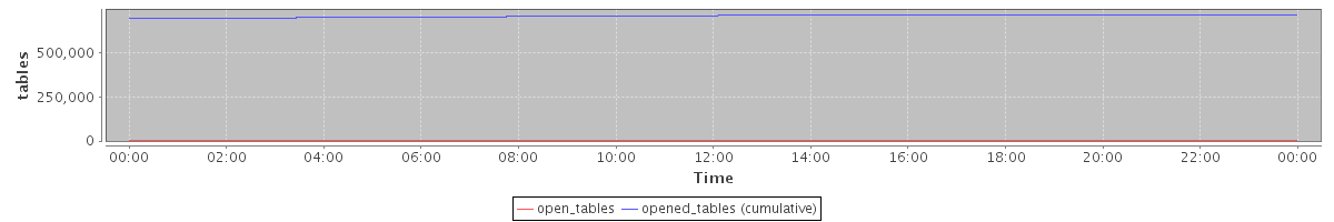 avg(open_tables) = 1196.33 avg(opened_tables (cumulative)) = 708618.39