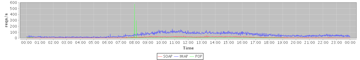 Host zm02.stanford.edu: Mailboxd: Request Rate by Client Protocol