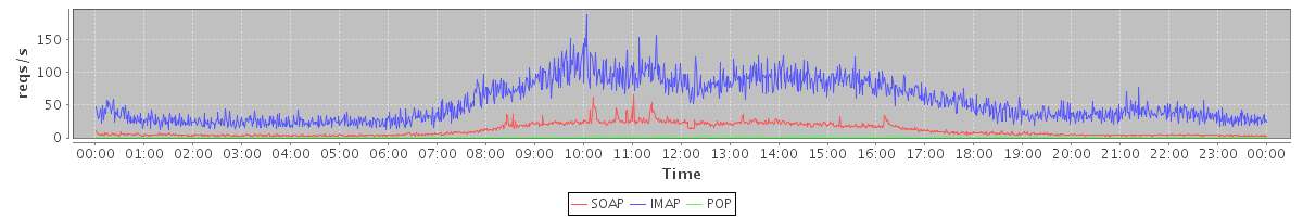 Host zm03.stanford.edu: Mailboxd: Request Rate by Client Protocol