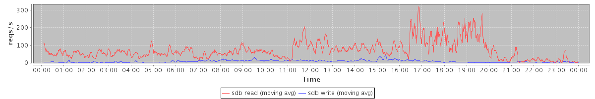 avg(sdb read) = 1309.14 avg(sdb write) = 207.78