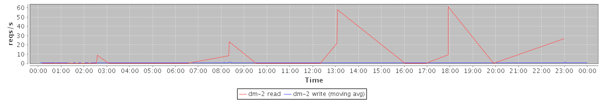 avg(dm-2 read) = 0.08 avg(dm-2 write) = 0.70