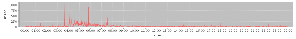 avg(AutoCompleteRequest) = 199.88 avg(SendMsgRequest) = 552.73 avg(BackupQueryRequest) = 565.20 avg(GetAggregateQuotaUsageOnServerRequest) = 1199.00 avg(GetFreeBusyRequest) = 139.05 avg(ForwardAppointmentRequest) = 895.00 avg(BrowseRequest) = 185.67 avg(BackupRequest) = 943.50 avg(GetQuotaUsageRequest) = 1305.00 avg(AddMsgRequest) = 112.73