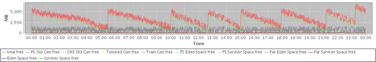 avg(total free) = 3435.70 avg(PS Old Gen free) = 0.00 avg(CMS Old Gen free) = 2585.74 avg(Tenured Gen free) = 0.00 avg(Train Gen free) = 0.00 avg(PS Eden Space free) = 0.00 avg(PS Survivor Space free) = 0.00 avg(Par Eden Space free) = 793.33 avg(Par Survivor Space free) = 56.63 avg(Eden Space free) = 0.00 avg(Survivor Space free) = 0.00