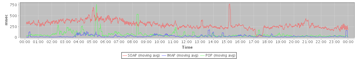 Host zm02.stanford.edu: Mailboxd: Response Time by Client Protocol
